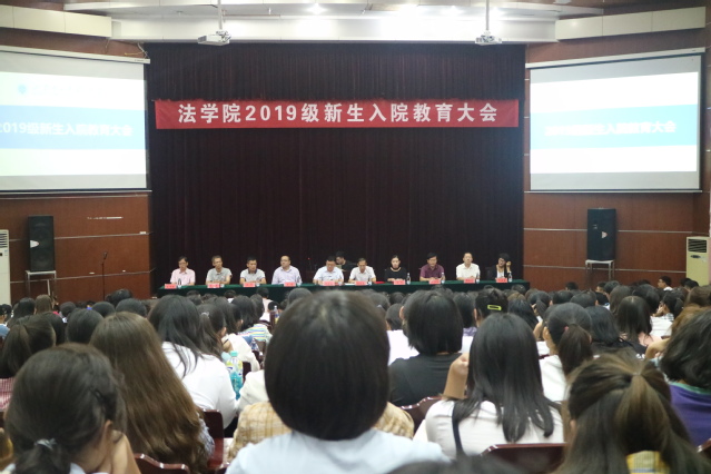 9月12日下午,w88win体育官网入口在模拟法庭召开2019级新生入院教育大会,法公司党总支书记张宗磊,经理、党总支副书记杨晓春,副经理李哲、王玲,经理助理白洋,教授委员会主任张连国,教授委员会副主任陈红兵,各系、室负责人以及2019级全体班级导师出席会议,2019级全体新生参加此次会议。大会由院员工工作办公室主任许燕飞主持。