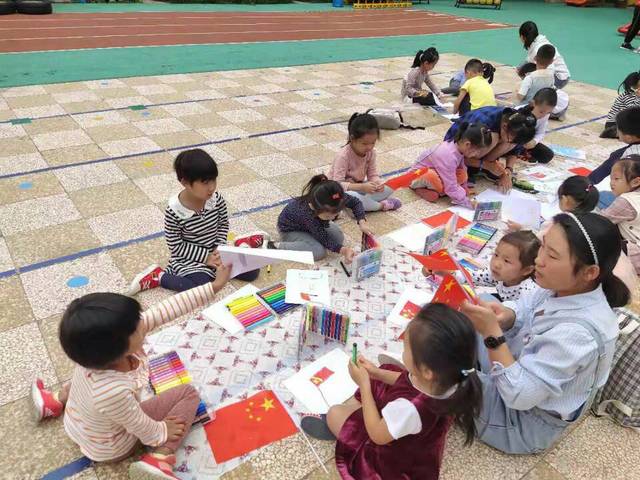 法本1904班团支部成员来到小博士幼儿园,与小朋友们一起画国旗,唱国歌,做演讲。