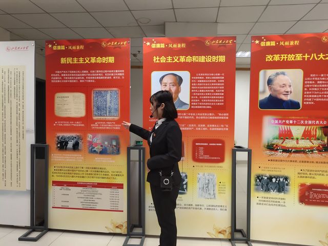 参观正式开始之前,稷下廉政展厅的讲解员对参观纪律进行了严格要求。此次参观讲解由五个部分组成:历史中的廉政文化镜鉴;中国共产党拒腐防变的风雨之路;中国共产党在廉政建设上的举措和对贪腐官员的惩治实例;学习廉洁政治方面的典型代表;遵章守纪、廉洁修身应从我们自身做起。