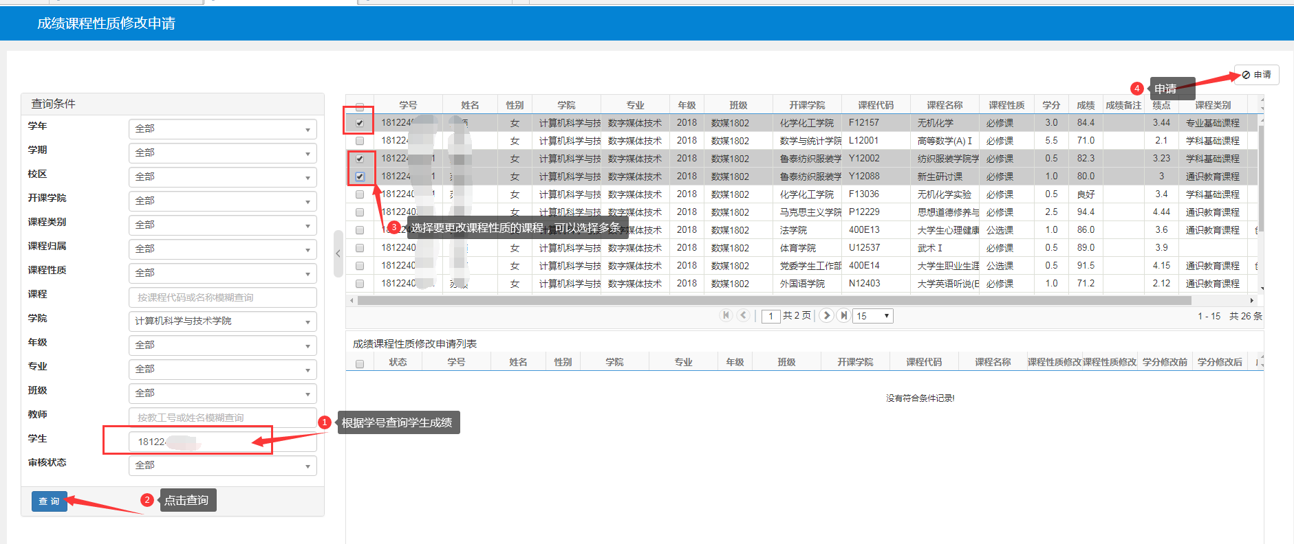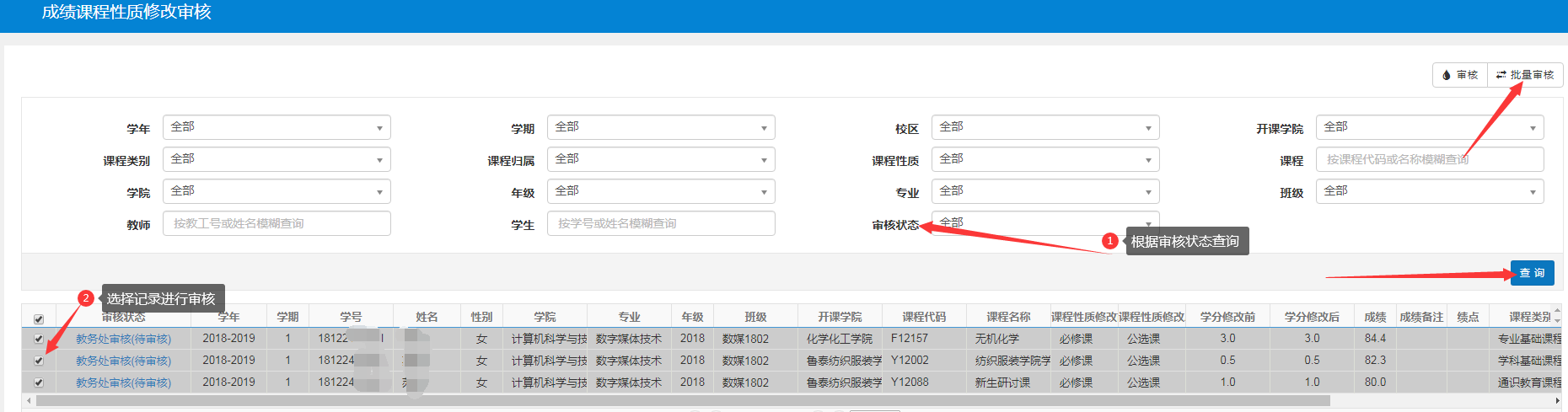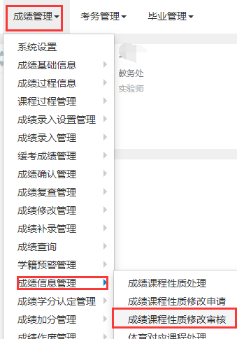 3. 教务处:登录教学综合信息服务平台【成绩管理】-【成绩信息管理】-【成绩课程性质修改审核】