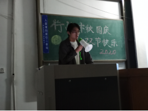 10月1日晚上,法学,社会工作,行政管理专业分别在二教201教室,一教102教室以及二教127教室举办“国庆中秋双节晚会”。整场晚会由员工自主参与组织与编排,员工自主报名节目展示,节目内容形式丰富,表演内容积极向上生动有趣,充分展现老员工优良的精神风貌。《夏天的风》、《水星记》等悦耳动听,使得台下的同学也打开闪光灯回应,笑点十足的小品以及相声表演《满腹经纶》,引起了现场欢乐的共鸣,还有朗诵以及新疆舞表演,同学们积极响应,掌声不断。军训教官和2019级学长也客串了晚会,更是引起同学们的热情掌声。晚会的最后,同学们集体合唱《我和我的祖国》,歌声中充满对祖国的热爱,整场晚会圆满结束。
