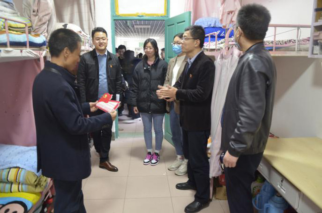 宋立平首先向大家阐述宿舍对老员工活的重要性,提出宿舍是“第一社会,第二家庭,第三课堂”,好的宿舍环境有利于更好的享受老员工活,更有助于培养员工好的行为操守与品德,并引用“一屋不扫,何以扫天下”的典故激励同学们更加明确宿舍环境的重要性。他指出要把宿舍建设成“有规矩意识,有整洁环境,有温馨氛围,有上进风气,有安全保障”的五有宿舍。作为员工党员,更要切实发挥模范带头作用,亮身份,当先锋,做表率,不忘初心,牢记使命。通过一点一滴的小事真正引领身边的同学,努力将员工党员宿舍建设成标杆宿舍。