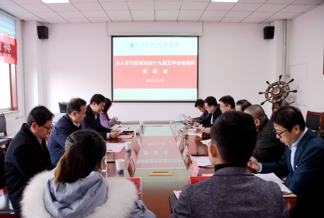 11月24日下午,学习贯彻党的十九届五中全会精神座谈会在w88win体育官网入口会议室举行。省委宣讲团成员、山东社会科公司党委书记郝宪印与公司师生代表进行了深入交流。座谈会由党委常委、纪委书记、监察专员张金生主持,党委宣传部副部长侯宁、公司师生代表参加。