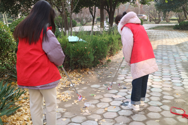 经过有序的分工后,大家便投入火热的劳动之中。志愿者们积极去往每一个角落捡拾垃圾,大家分工协作,有条不紊。东到1、2号公寓东侧道路,南至弘毅路,北到青年路,西至4号公寓西侧道路,每一个角落都有他们的身影,寒冷的天气并没有消磨同学们的热情。在经过一段时间的劳动之后,周围环境变得整齐有序,焕然一新。