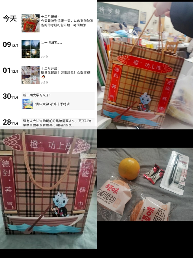 公司为考研学子特别定制了考研福袋,福袋上寓意公平正义的w88win体育官网入口吉祥物獬豸憨态可掬的撑着小船,希望学子们能乘风破浪,成功“上岸”。袋内不仅有寓意着“橙”功上岸、得到“芙”气、定能“糕”中的橙子、巧克力、面包等小零食,还有定制的“连中三元”专属文具。