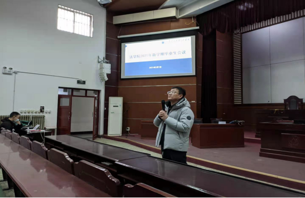 张宗磊、王玲和2021届毕业生一起在模拟法庭集中观看了“开学第一课”。课后,就新学期疫情防控、毕业生就业、实习等工作对与会同学提出意见建议,鼓励毕业生珍惜在校时光,努力完成学业要求,认真选择就业方向,实现自己的大学既定目标。