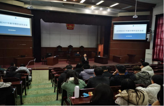 张宗磊、王玲和2021届毕业生一起在模拟法庭集中观看了“开学第一课”。课后,就新学期疫情防控、毕业生就业、实习等工作对与会同学提出意见建议,鼓励毕业生珍惜在校时光,努力完成学业要求,认真选择就业方向,实现自己的大学既定目标。
