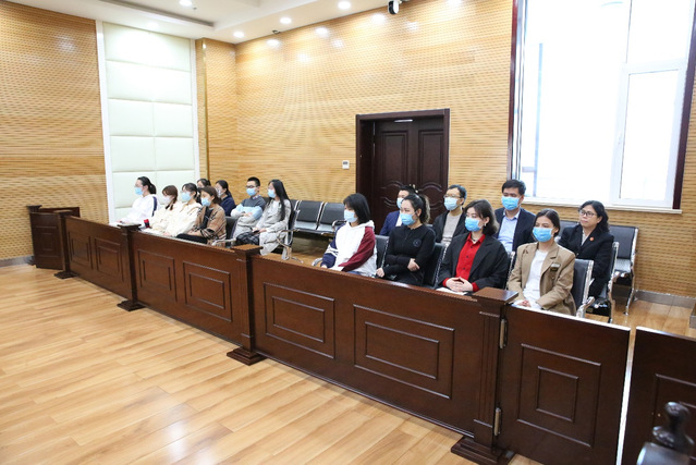 下午13时30分,在法律系郑承友、国鹏、封延会、徐德臣四位老师的带领下,十二名法学本科员工通过法院的安检进入诉讼服务区域,参观了立案大厅等办公场所。下午14时,随着一声法槌庭审开始,整个庭审共持续了一个半小时。从书记员宣布庭审纪律到审判长核实当事人信息,从法庭调查到法庭辩论,直至审判长宣布休庭,同学们自始至终保持全神贯注,对于民事诉讼庭审的整个流程有了一个直观、深刻的了解。庭后,知识产权庭倪玲玲庭长带领合议庭人员和其他法官,就我国当下知识产权司法保护面临的相关问题与公司师生进行了座谈。除了庭审涉及到的实体问题和程序问题,法官们还针对同学们关心的包括法官的工作状态、职业感悟等方面的问题与各位同学进行了深入的交流。最后,各位法官还结合自身的学习、工作经历,向同学们提供了诸多建议。