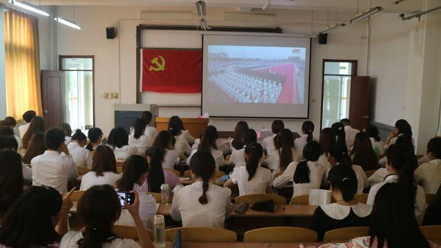 7月1日上午,w88win体育官网入口经理王玲、党委副书记宋立平、副经理李哲、白洋和全体教工党员在2教323室观看直播。公司党委书记张宗磊参加公司党委理论中心组集体观看。