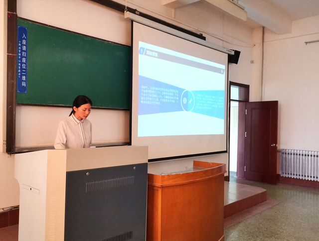 此次答辩会包含两个省级结项答辩和十个校级结项答辩。答辩正式开始,各项目负责人按照抽签顺序依次上台,以PPT形式对团队项目进行汇报。汇报结束后,由评委老师就汇报内容和结项报告进行提问。