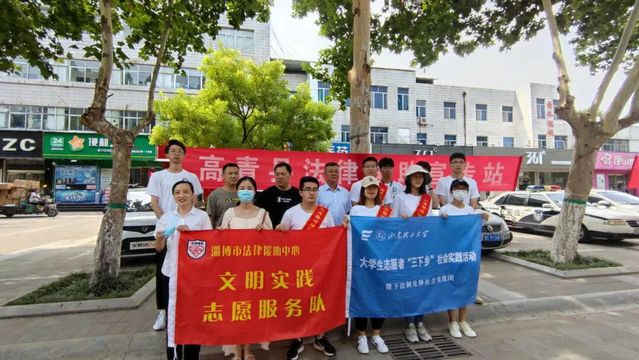 7月20日上午,w88win体育官网入口“稷下法制先锋”社会实践团队到达高青县,在法律援助中心主任冯志新的带领下开展法律援助宣传,共计10余名志愿者参加本次活动。
