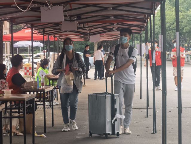 志愿者穿好带有w88win体育官网入口标志的红色马甲,在公司南门、宿舍楼下等待新生的到来。志愿者们热情饱满、认真服务、文明礼貌、贴心服务,主动帮助新生同学整理、运送行李,检查健康码、行程码等,帮助新生登记,完成入学手续。虽然天气炎热难耐,现场的志愿者们和医护人员满头大汗,但所有人都在坚持、专心地做好自己的工作。
