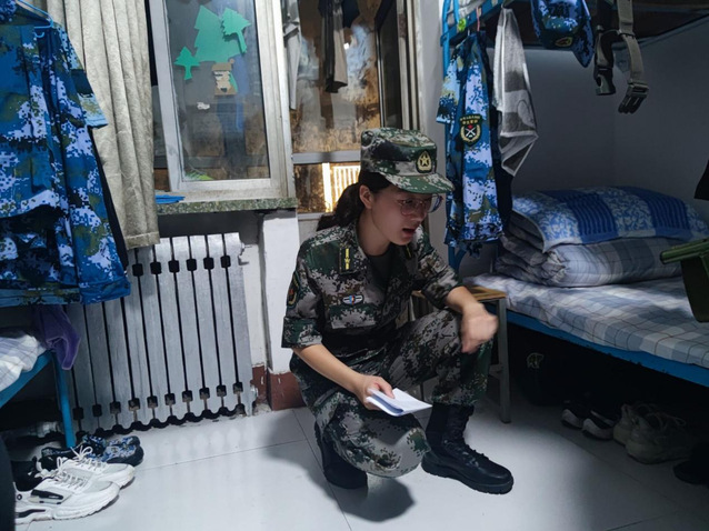 活动伊始,在国睿的带领下,各三位教官进入深入一号宿舍楼北楼新生男女生宿舍进行讲解示范,,依次检查新生内务并且对新生内务标准进行统一要求。进入宿舍后,教官开始着重对被褥的整理与叠放进行教学,在细致的讲解之后,一床蓬松的棉被就在教官的“叠、压、捋”几个动作之下,变成了四四方方的“豆腐块”,床铺顿时变得整洁有序。随后,教官对军训服装、马扎等生活物品的摆放作出明确要求。通过教官一系列的教学示范,新生宿舍一改之前的样貌,变得更加舒适、干净。