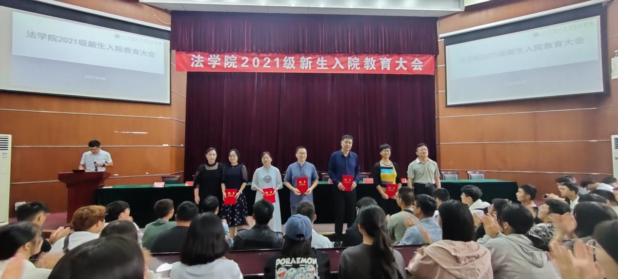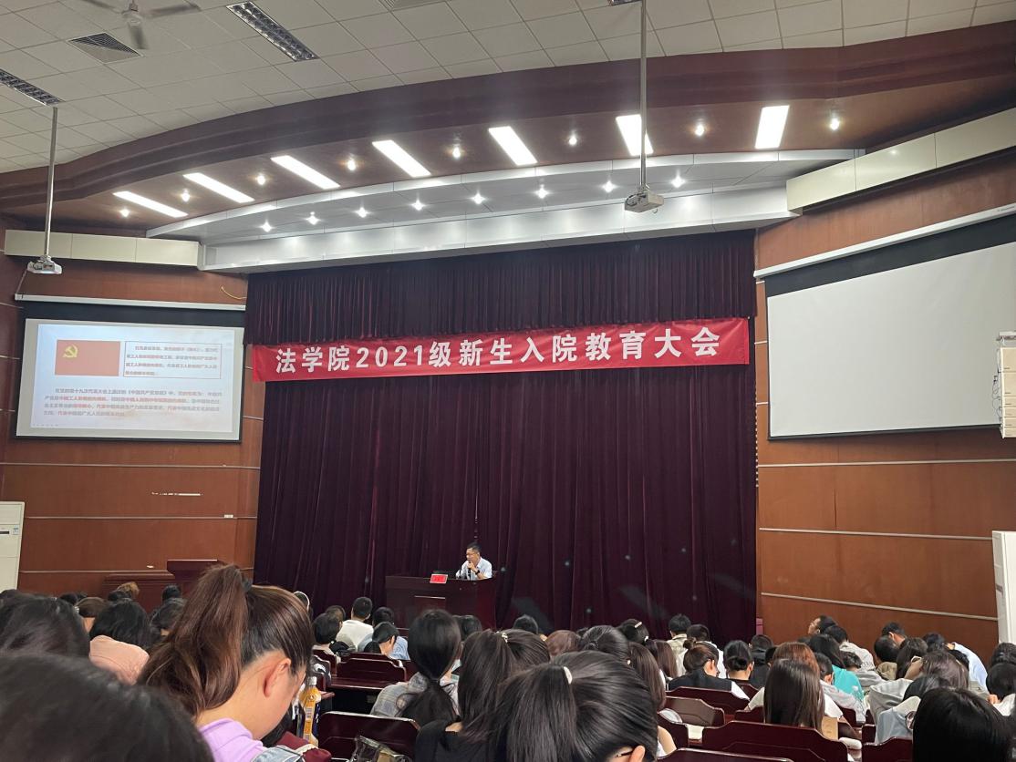 9月18日下午,公司在模拟法庭举行2021级新生入院教育大会,公司领导、系(室)主任、各班级导师参加。