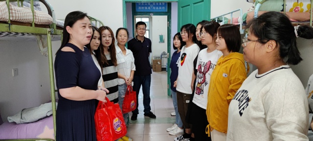 21日上午,w88win体育官网入口经理王玲、党委副书记宋立平、新生辅导员国睿来到新生宿舍,将“校徽月饼”送到每位新生手中,为全体新生送上真挚的节日问候与祝福。王玲细心询问入学后的住宿、就餐、是否适应大家集体生活等问题,嘱咐同学们要养成良好的生活作息和学习习惯,尽快融入老员工活。王玲特别叮嘱新生,第一次在外过中秋要克服离愁别绪,既要及时与家人通话报平安,也要和同学一起过好中秋佳节。