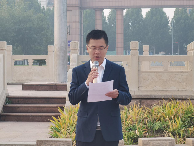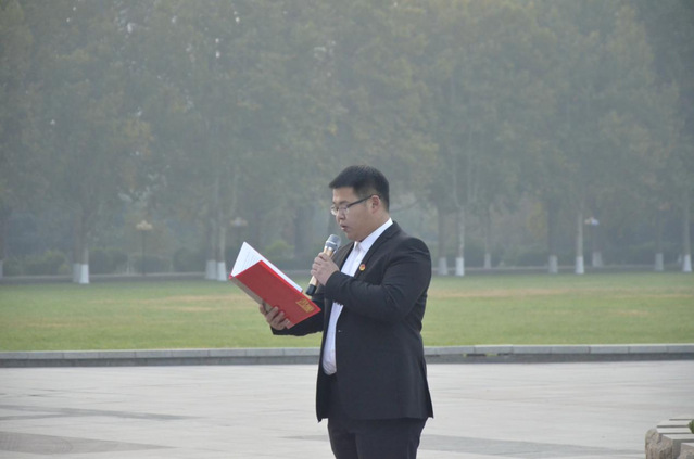 员工代表张少楠进行题目为“弘扬爱国精神,担当青年责任”的国旗下演讲。他号召同学们要将个人命运与国家的前途命运紧密相连,把对祖国的热爱之情转化为促进改革发展稳定的实际行动,积极响应祖国和时代的召唤,努力为公司、社会做贡献。