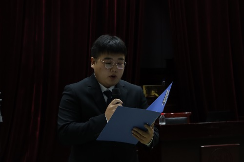社工1901班齐大智作为学员代表,从如何向党看齐、如何培养自身能力、向党组织靠拢等方面号召同学们争做一名合格的共产党员,并代表同学们向党组织做出承诺。