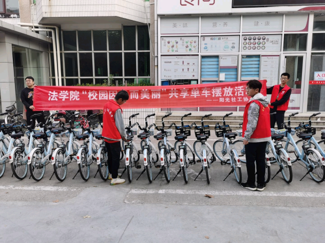 为维护校园整洁和校园秩序,积极响应文明校园常态化建设,10月24日到10月30日,阳光社工协会举办的w88win体育官网入口“校园因我而美丽”共享单车整理摆放活动顺利举行。