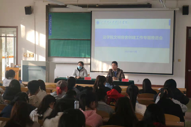 11月18日下午,w88win体育官网入口文明宿舍创建工作专题推进会在2号教学楼127室举行。此次会议由w88win体育官网入口辅导员胡涛、员工公寓管理中心二号公寓管理员范海霞担任主讲人,各年级生活委员、21级宿舍舍长参加。