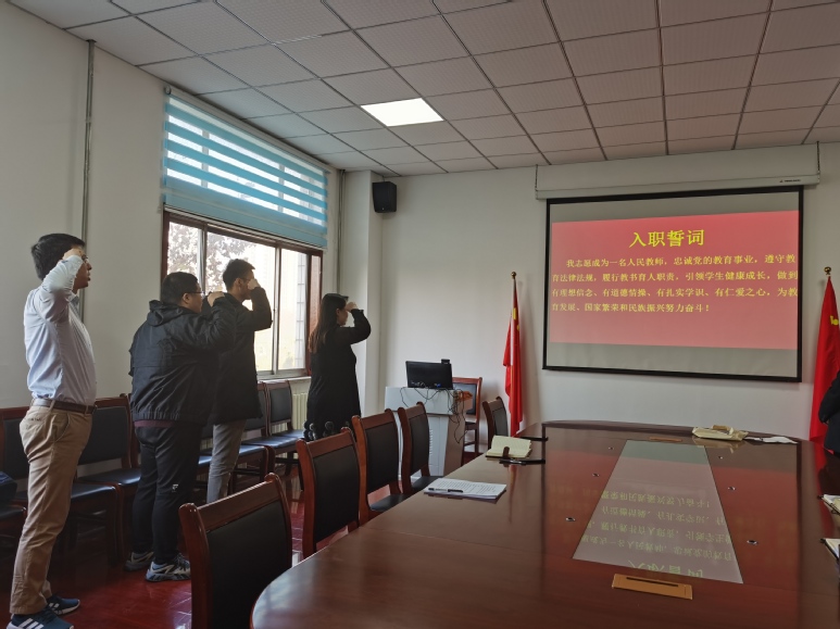 会上,王玲带领新进教师进行入职宣誓。青年教师导师代表张波与大家分享了自己从教近三十年的心得体会并对新进教师在教学方面提出了建议。新进教师分别谈了自己入职公司以来的感受及下一步的工作打算。最后,王玲进行了总结讲话,代表公司对新进教师提出了希望和建议。