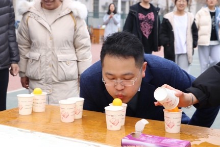 此次运动会以“非竞技赛,安全第一”为原则设计了多个项目,包括“师生投篮比赛”“碗中夹弹珠”“师生8字跳绳”“单人跳绳”“吹乒乓球”“师生踢毽子”。