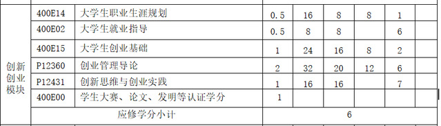 (1)创新创业课程及学分要求见下表: