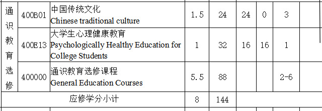 6.“通识教育选修课”模块应修8学分。多获得的创新创业课程学分可顶替公选课学分,毕业资格审核时合并计算,不需要进行课程性质修改。