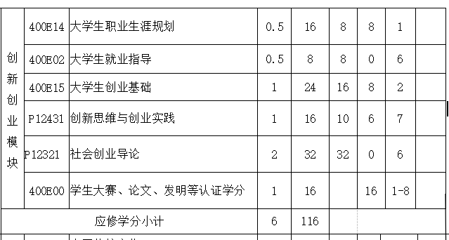 (1)创新创业课程及学分要求见下表: