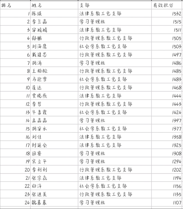 为期30天的“学习强国‘学习达人’积分挑战赛”已落下帷幕,该活动受到公司师生广泛响应和积极参与。活动日期为4月1日至4月30日,整体参与度较高,经过后台数据核对比较,现将比赛有效积分情况公布如下(注意:有效积分包括每日登录1′*30、选读文章12′*30、视听学习12′*30、每日答题5′*30、挑战答题6′*30、四人赛2-5′*30、二人赛1-2′*30、订阅2′*30、分享1′*30、发表观点1′*30、本地频道1′*30、强国运动每周2′*4、每周答题5′*4、专项答题10′*12):