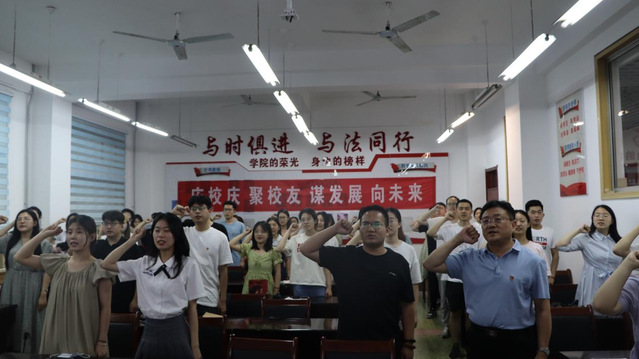 课程最后,张宗磊与毕业生党员们共同重温入党誓词,进行庄严宣誓。