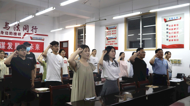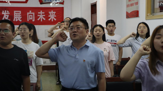 课程最后,张宗磊与毕业生党员们共同重温入党誓词,进行庄严宣誓。