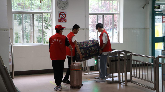 6月17日,2022届毕业生陆续离校。w88win体育官网入口组织志愿者在1号、2号公寓为毕业生离校提供爱心搬运服务,用实际行动送别学长学姐。