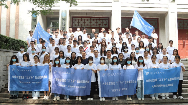 王振、张宗磊为实践团代表授旗。