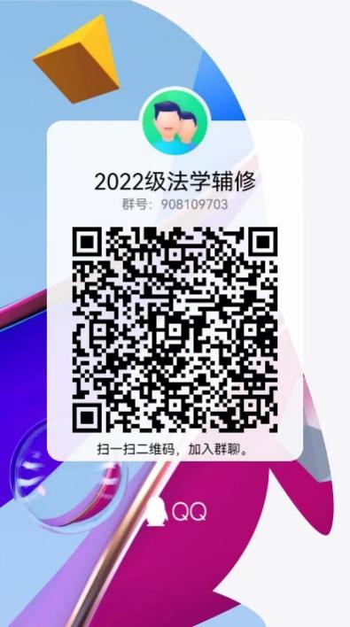 报名员工请及时加入2022级相关专业群:法学和社会工作专业加入2022级法学辅修QQ群:908109703;行政管理专业加入2022年行政管理双学位QQ群:731659146。