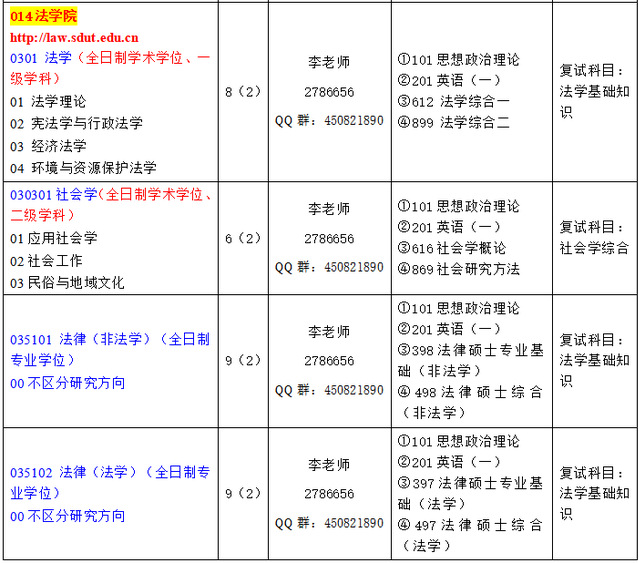 法学学科设有法学一级学科硕士点(设置法学理论,宪法学与行政法学、经济法学、环境与资源保护法学等专业方向)和法律硕士专业学位点。本学科现有硕士研究生导师20人,其中,教授9人,博士13人,1人为“闽江学者”特聘教授,1人获“山东省十大优秀中青年法学家”称号,1人入选山东省优秀理论人才“百人工程”,1人入选公司“双百工程”第四层次。2018年至今,先后承担国家级项目4项,省部级项目30余项;获省部级奖励3项。
