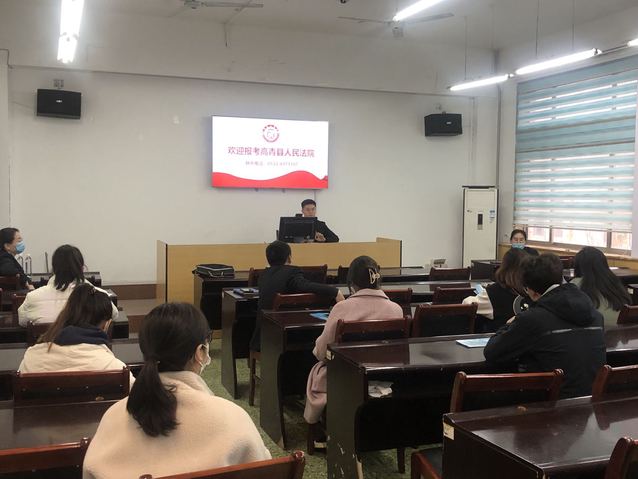 宣讲会上,法院工作人员播放了高青宣传片,介绍了高青法院的基本情况、本次招录设岗情况及岗位要求,与到会同学进行了充分交流。