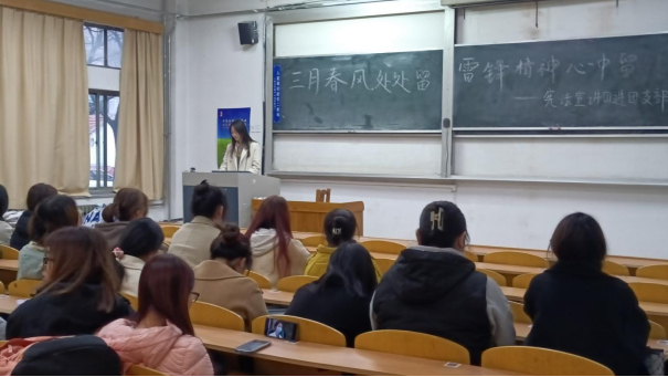 公司“学思享”老员工宪法宣讲团成员走进各年级团支部,以“弘扬雷锋精神,践行法治初心”为主题作了生动演讲,既带领大家集体学习习近平总书记关于深入开展学雷锋活动作出的重要指示精神,又为大家阐述习近平法治思想的深刻内涵。