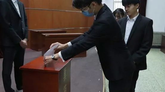 亓鸿儒当场宣布最终的第二十三届主席团成员名单。会后,全体成员在模拟法庭前进行合影留念。