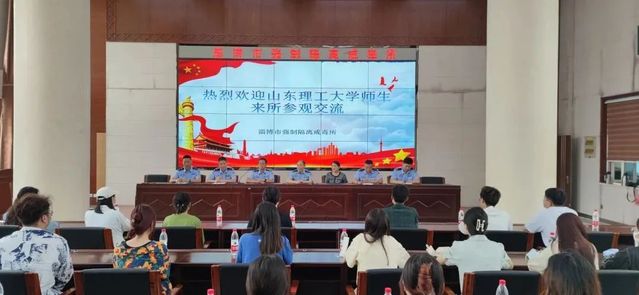 淄博市强制隔离戒毒所张洪卫副政委、孙玉宝科长以及所内干警热情接待了参访师生。在强戒所报告厅,孙科长首先向全体师生介绍了戒毒所的基本情况及工作流程,并对我市的毒情形势、强制隔离戒毒和社区戒毒现状等情况做了详细讲解,包括戒毒所监管制度、强制戒毒人员分类标准、疾病处理程序、心理治疗内容及方法、强制劳动制度等方面。