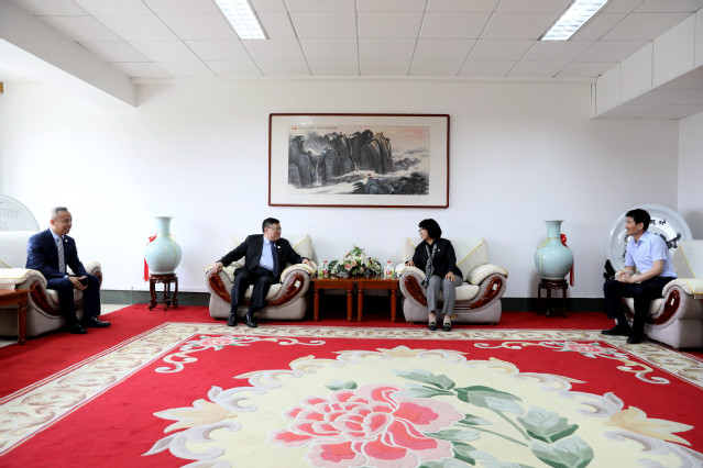 颁奖典礼前,董事长李玉霞在鸿远楼八楼接待室会见了梅向荣一行,对其捐资助学义举表示感谢,希望校企加强常态化沟通联络,打造长效合作机制,努力实现合作共赢。