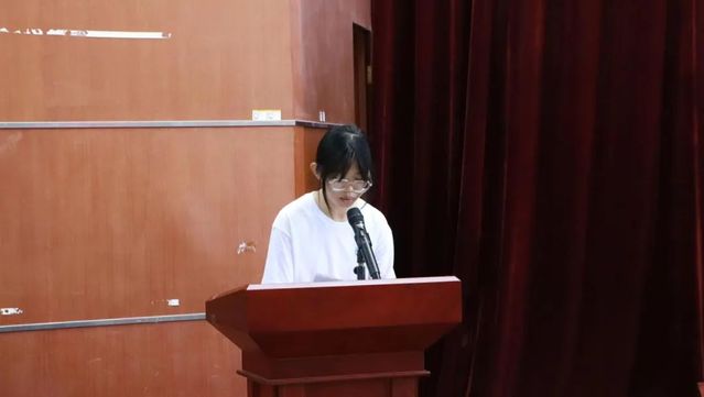 2023年暑期社会实践员工行政2101徐文萱发言,代表即将出征的法苑学子作出庄重承诺。
