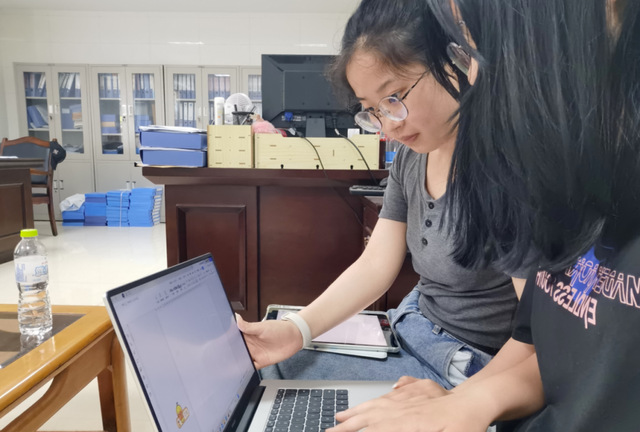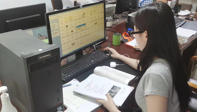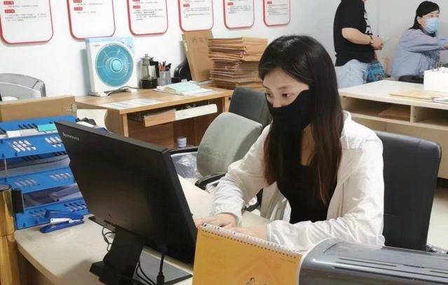 同学在人社局进行档案录入工作,准确录入每一份档案并进行整理排序。