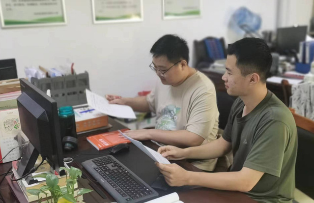 员工在社保中心组织人事科工作人员指导下,填报灯塔在线系统上的相关材料。