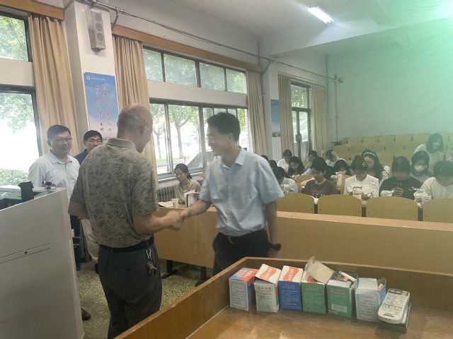 公司党委常委、副董事长苏守波到1号教学楼116教室和2021级社会工作的同学们一起听《人民调解实务》,课间与胡安水老师进行亲切交流。