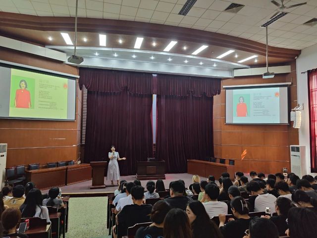 会议邀请了中国管理科学研究院特约研究员、人力资源和社会保障部高级礼仪培训师上的理工大学创业导师高子淇女士为同学们带来职业规划主旨演讲。高子淇从明确目标、提升能力、开阔视野、树立自信等方面进行精彩讲述,希望同学们以积极向上的心成为有智慧的人。