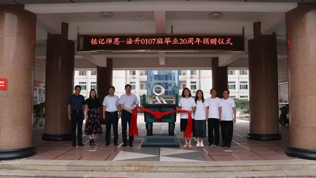 法升0107班全体同学共同为公司捐赠了“法安天下”的青铜法鼎,为全体员工践行感恩之心树立了榜样,也将激励广大同学刻苦学习、努力奋斗、回馈母校、回报社会。