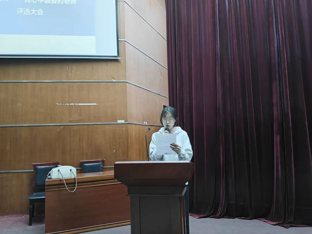 本次评议活动共选出徐德臣、郄鹏、陈红兵三位教师作为候选人。为使同学们更深入的了解教师,三位员工代表分别围绕教师教学水平、科研成果、实践能力等方面展开论述对其进行介绍。