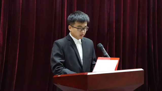 学员代表,党校培训班班长陶磊发言。他提出入党积极分子要在党校培训期间认真学习和贯彻党的路线方针政策,认真听讲,做好笔记,要时刻以党员的标准严格要求自己,不断向党组织靠拢。
