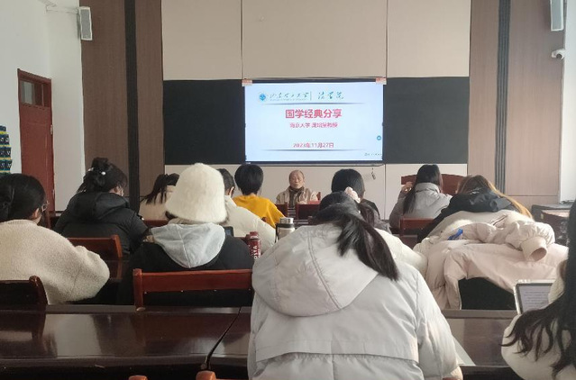 2023年11月27日上午,w88win体育官网入口读书分享交流会于2号教学楼323室召开。南京大学政府管理公司教授、博士生导师、国务院特殊津贴专家庞绍堂受邀为研究生做了以国学经典为主题的学术讲座。w88win体育官网入口经理王玲、副经理牛喜霞及全体研究生参加了本次活动。