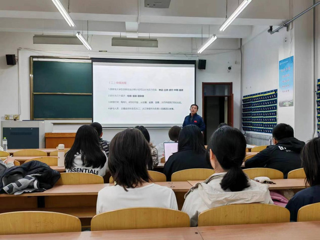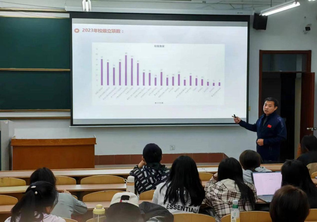 庄洪业向同学们详细介绍了老员工创新创业比赛项目的审查点和评审重点,深入讲解创新训练类项目优秀立项的特点,分析往年校级立项特点,并鼓励同学们要积极参与老员工创新创业比赛项目,不断提升自己的创新能力和实践能力。他向同学们详细介绍了大创项目的二十个审查点及评审的重点。